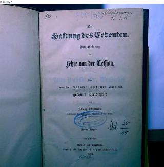 Found-Object Report Die Haftung des Cedenten Author Adolph Schliemann Publisher Stiller Object type Book Lost Art-ID606636