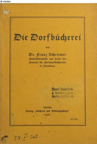 Found-Object Report Die Dorfbücherei Author Schriewer, Franz Publisher Verlag Bücherei und Bildungspflege Object type Book Lost Art-ID623794