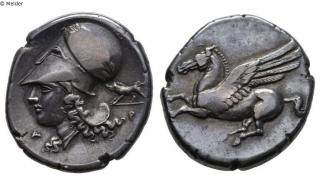 Found-Object Report Stater (Mint of Hellas / Corinth): Pegasos / Athena's head Artist / Creator Unknown Object type Coin Material / TechniqueMetal (Silver)Lost Art-ID596243