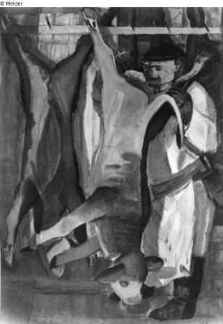 Search Request Butcher's Shop In the Meat Market Artist / Creator Derkovits, Gyula Object type Painting Material / TechniqueOil ; Canvas / paintedLost Art-ID613861