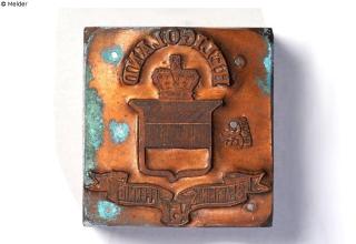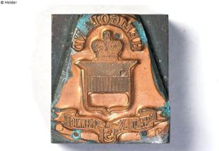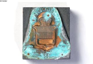 Found-Object Report Printing block for the postal stationery strip (old Germany, Helgoland), 3 Farthings / 5 Pfennig, MiNr. S 2 (b) Artist / Creator J.G.Schelter & Giesecke Object type Philately Material / TechniqueMetal (Copper) ; Metal ; WoodLost Art-ID630136