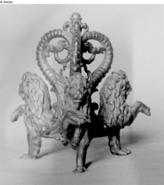 Search Request Object in the form of three lions bodies Artist / Creator Unknown (Italienisch (Venedig)) Object type Sculpture Material / TechniqueMetal (Bronze)Lost Art-ID526682